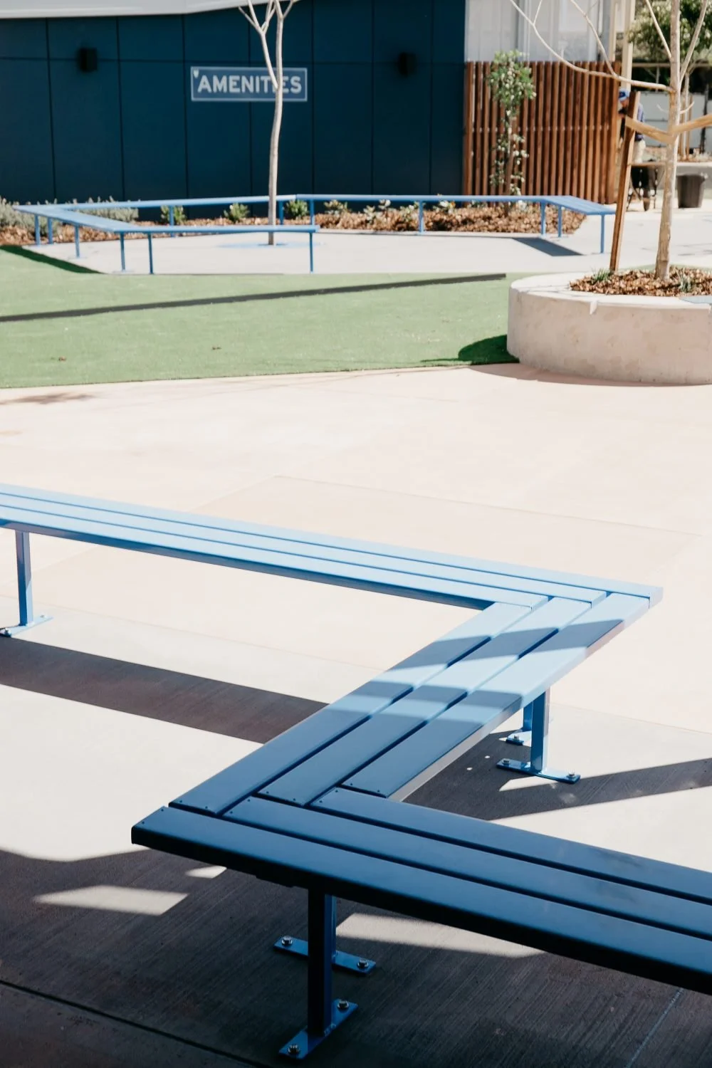 Steel Post and Rail seating is robust and hard wearing using hot dip galvanised steel, heavy-duty aluminium, our own unique Colorbond Locsteel planks and only high-quality hard-wearing materials and components. We have seating for any application.
